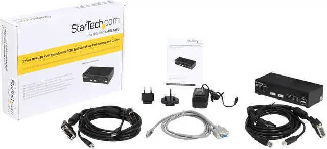 1 x KVM Switch 2 x 6ft USB DVI-D KVM Cables 1 x Firmware Upgrade Cable 1 x Universal Power Adapter (NA/EU/UK) 1 x Instruction Manual