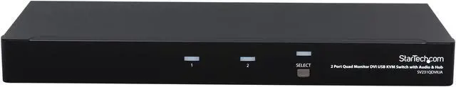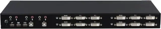 Switch between two Computers sharing four DVI displays, speakers & mic, USB Keyboard & Mouse, and USB 2.0 peripheral Compatible with the Thinkpad Minidock Plus series Quad Monitor DVI USB KVM Switch / Quad Video KVM / Multi-Monitor KVM Supports resolutions up to 2560x1600 1 USB 2.0 hub port, plus Mic/Audio Control 2 quad display computers with a single set of peripherals Dual system control for a single workstation with quad monitors, increasing productivity in the office or at home