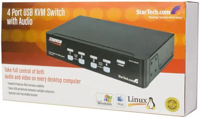 4-Port Rack Mountable USB KVM Switch with Audio and USB Hub