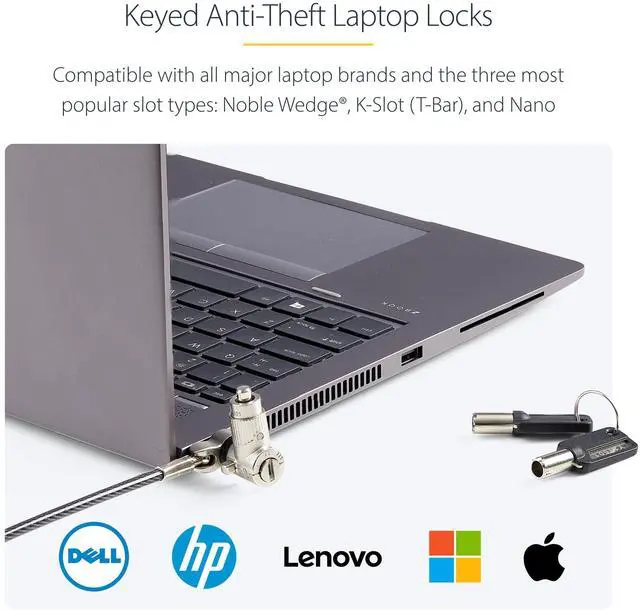 25-Pack Universal Laptop Lock 6.6 ft, Keyed Alike Locking Cable, Security Cable, Compatible w/Noble Wedge? /Nano/K-Slot, Anti-Theft Cut-Resistant Cable - TAA UNIVKA25-LAPTOP-LOCK