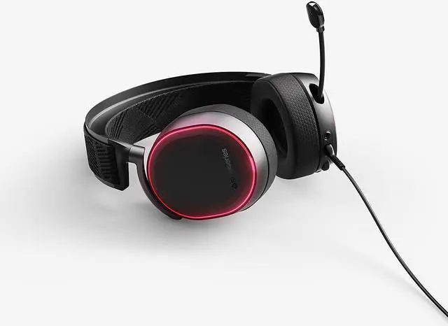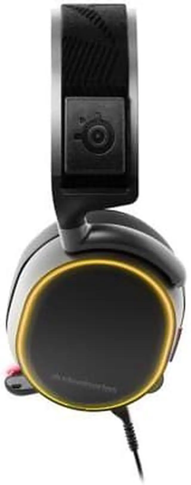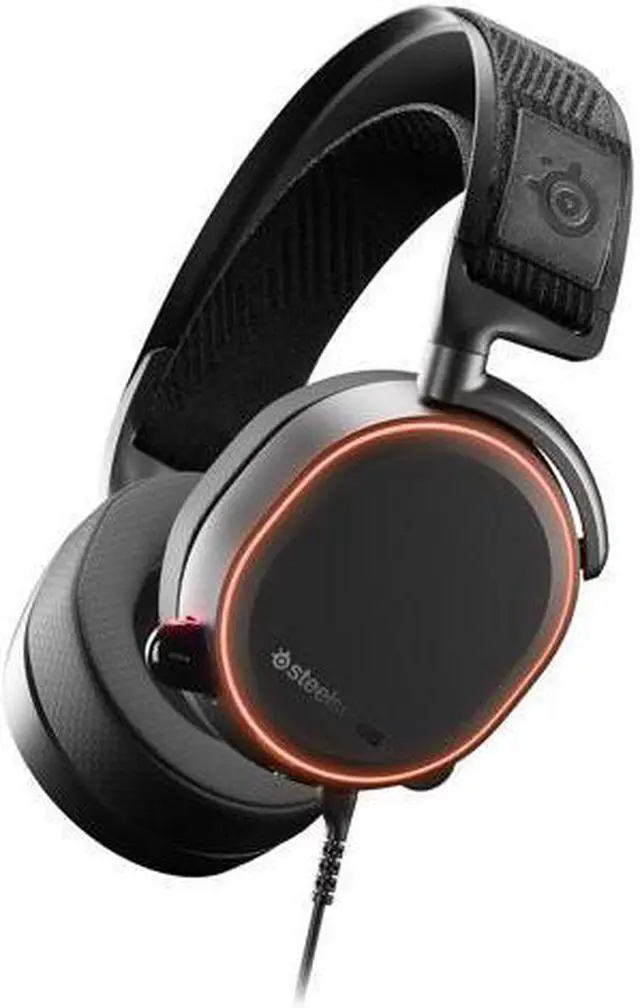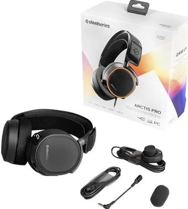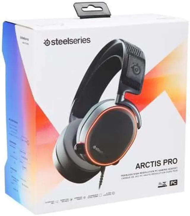 Take your in-game audio seriously with this SteelSeries Arctis Pro gaming headset. Its high-resolution speaker drivers with neodymium magnets produce dynamic audio details at 10Hz - 40kHz, and its ski-goggle headband and AirWeave ear cushions provide long-lasting comfort. The ClearCast microphone of this SteelSeries Arctis Pro gaming headset filters out background noise for high-clarity voice chats.