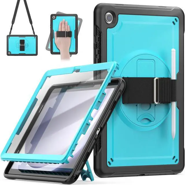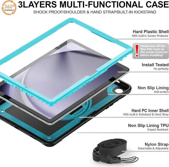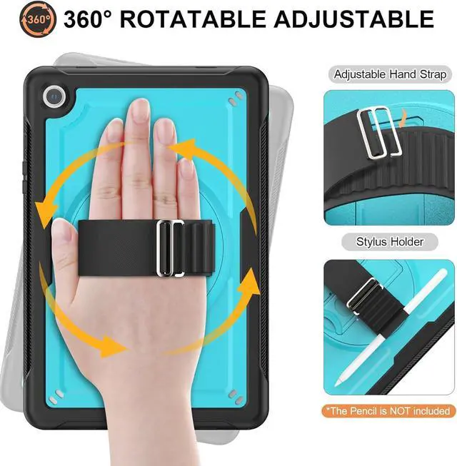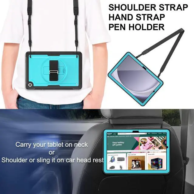 ADJUSTABLE HANDLE/SHOULDER STRAP- The back turntable built-in a hand strap, when you put your hand into the strap, you can firmly grasp the center of gravity of your Galaxy Tab A9 Plus 11 inch tablet. Additional adjustable shoulder strap up to 49 inches, it can be attached to the case for carrying your device.