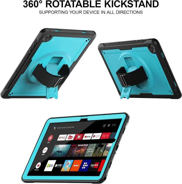 The stand is something we can't live without, we need it to support the tablet so that we can watch or type. This sturdy case offers a 360° rotatable foldable stand that supports our tablet both vertically and horizontally, allowing us to always use it at a comfortable angle.