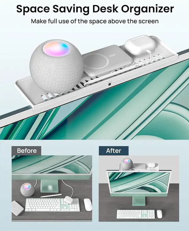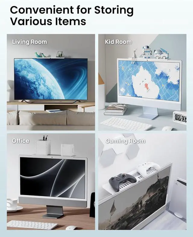 Wide Application: This monitor shelf can be placed on top of TV, computer monitor, or iMac. The monitor shelf is suitable for all general monitors, TV, Display whether it is a tilted or normal screen