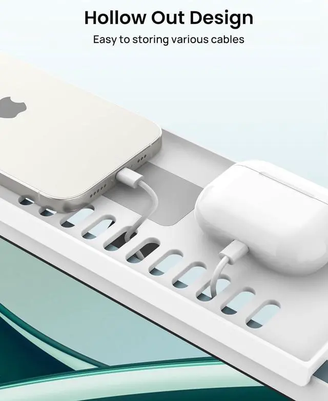 Unique Design: With the hollow out design, it is easy to store and organize various cables. And the top shelf with a slim front lip that only takes 5mm won't block any of your viewable areas
