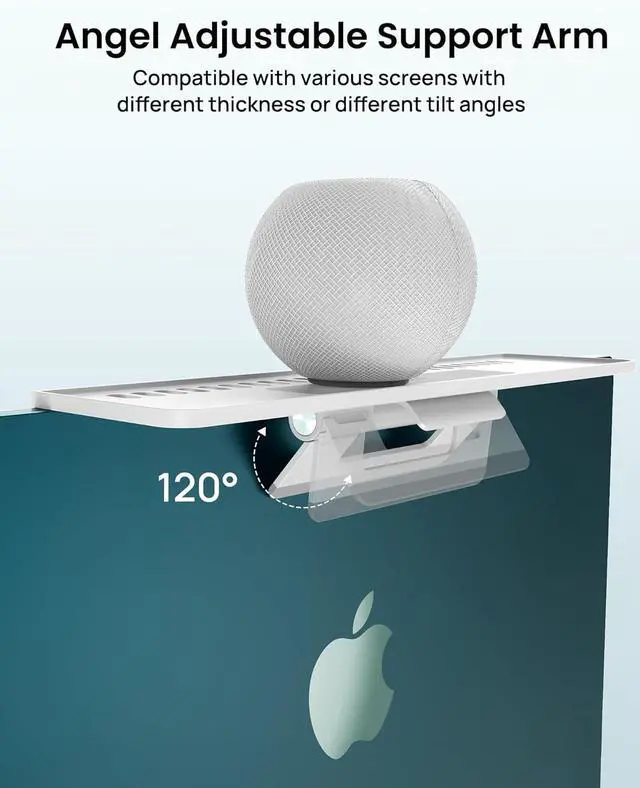 Simple but Versatile: ONE KEY LOCKED! No screws, no holes, no tools required! The support arm, just adjust it to the appropriate angle, and place it on a TV or computer screen, one buckle to lock it. Only takes a few seconds to mount the shelf well