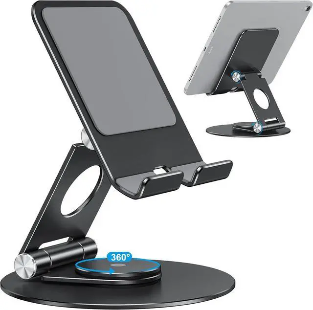 Wide Compatibility This tablet stand is compatible with various devices, including iPad/ iPad Air/ Pro/ Mini, Galaxy Tab, Android tablets, smartphones, etc. If you use this swivel tablet holder for iPad Pro 12.9/ tab s8 ultra, we suggest that you set it horizontally or find a suitable angle to make it not wobble.