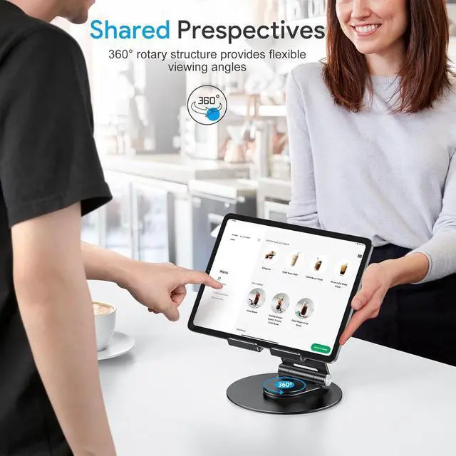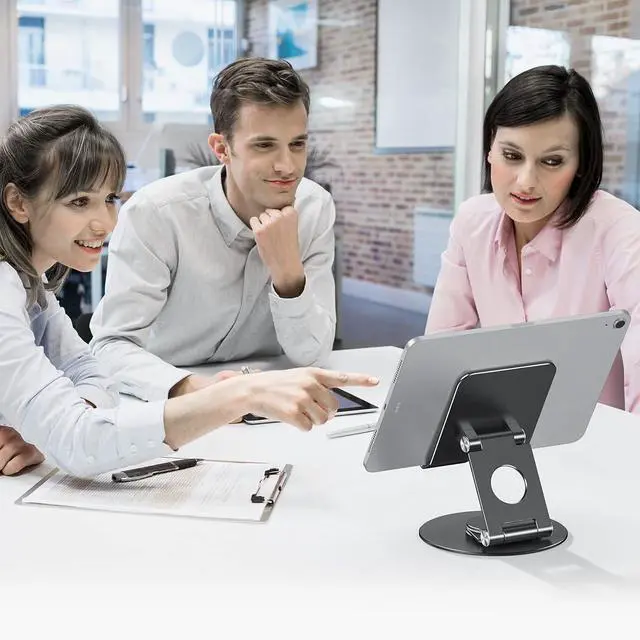 360°RotationWith a 360°rotating base, you can easily share your creation or business ideas with one-hand direction control. No need to move the traditional tablet stand back and forth like before.