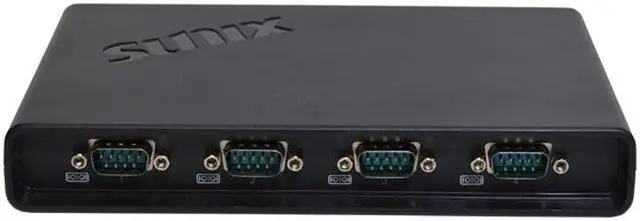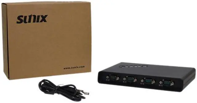 | Specifications | Interface : RS-232 Baud rate: 50bps ~115.2Kbps Controller: SUNIX DPL2000Q Stop bit: 1, 1.5, 2 BUS: Ethernet Parity: even, odd, none, mark, space No. of Port: 4-port Flow Control: Xon/Xoff (software) FIFO: 1Kbyte Hardware / per port Connector: DB9 Male Signal: DCD, TxD, RxD, RTS, CTS, DTR, DSR, GND, RI Protection: ±15KV ESD IEC6000-4-2 Air Discharge ±8KV ESD IEC61000-4-2 Contact Discharge ±4KV ESD IEC61000-4-2 Level2 Line-to-Line |