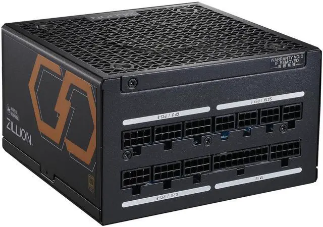Super Flower Zillion FG 1250W Cybenetics Platinum, 80+ Gold, Full Modular, ATX 3.1 / PCIe 5.0, W/12V-2x6 Cable (2x8pin - 16pin native cables), Power Supply, FDB Fan, SF-1250Z12FG, Black version