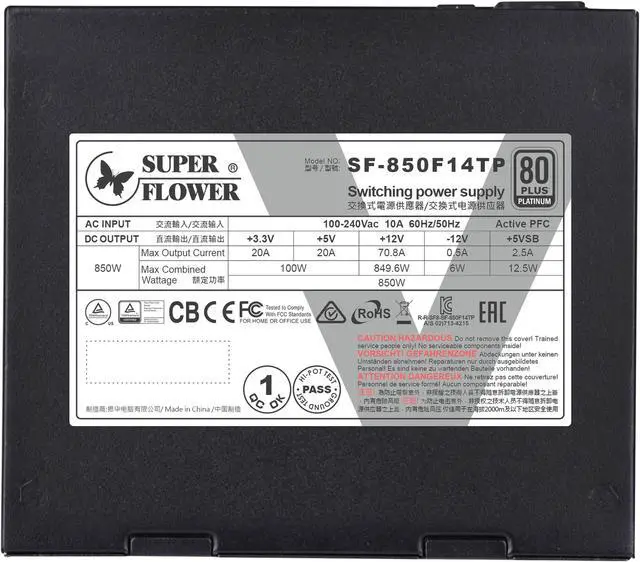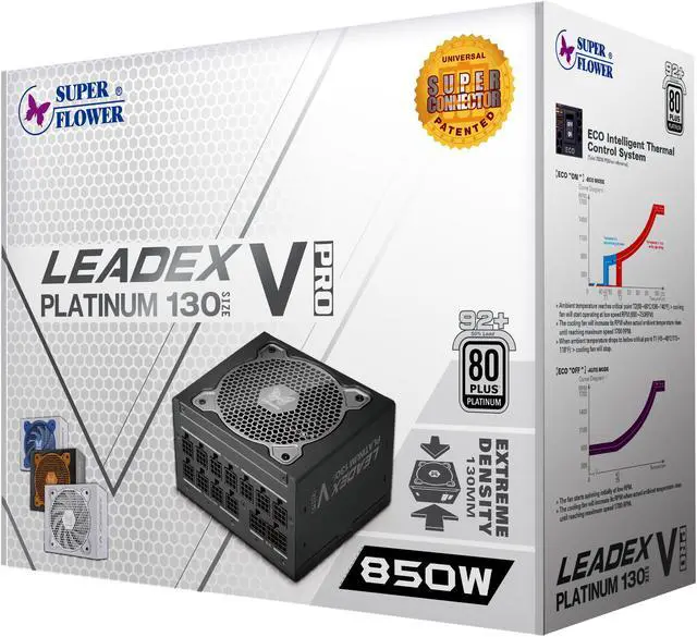 Super Flower Leadex V Platinum PRO 850W ATX 80 PLUS PLATINUM Certified Power Supply, Smallest 130mm 850W ATX PSU, 10 Years Warranty, Patent Super Connectors, Full Modular, SF-850F14TP