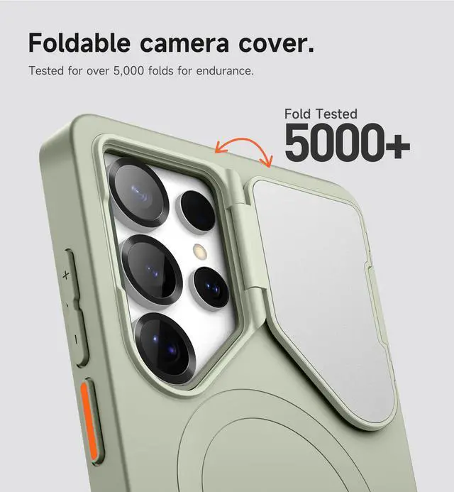 1.PC material camera flip cover, 180 degrees folding, 5000 times folding test, durable