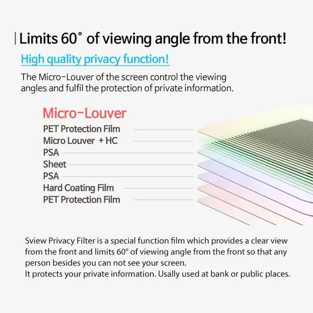 This anti-peeping screen can effectively block 40% of blue light and 99% of ultraviolet rays, reducing the damage to the eyes. It adopts Microlouver Technology, which can protect privacy by preventing peeping within a left and right viewing angle of 30 degrees. The installation method is simple, using a hanging type without sticking to the screen. It is equipped with anti-slip rubber to prevent displacement. With a hardness of 3H, the surface is scratch-resistant and waterproof, which can effectively enhance the protection of the screen.