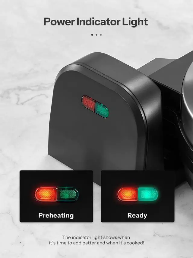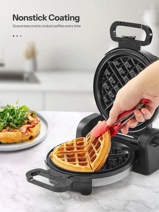 Reemix Waffle Maker, 180° Rotating Belgian Waffle Maker Round Classic Belgian 4-Piece, Evenly Baked | Non-Stick | Fast Preheat, Black+Silver