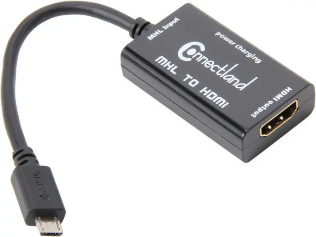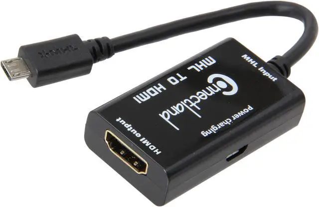 | Specifications | Supports both Video and Audio Signals Connectors: MHL (Mobile High-definition Link) HDMI (High-Definition Multimedia Interface) Micro USB (Power Feed from USB Cable. Cable not Included) Supports HDCP, HDMI High Speed Norms Supports Audio Format: LPCM 192 kHz 24 bits Supported Resolutions: 720p, 1080i, 1080p Video Bandwidth: 2.25 Gb/s Operating Humidity Range: 5 to 90% No Condensation Operating Temperature Range: -20C to 80C Adapter Length: 6" Color: Black |