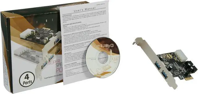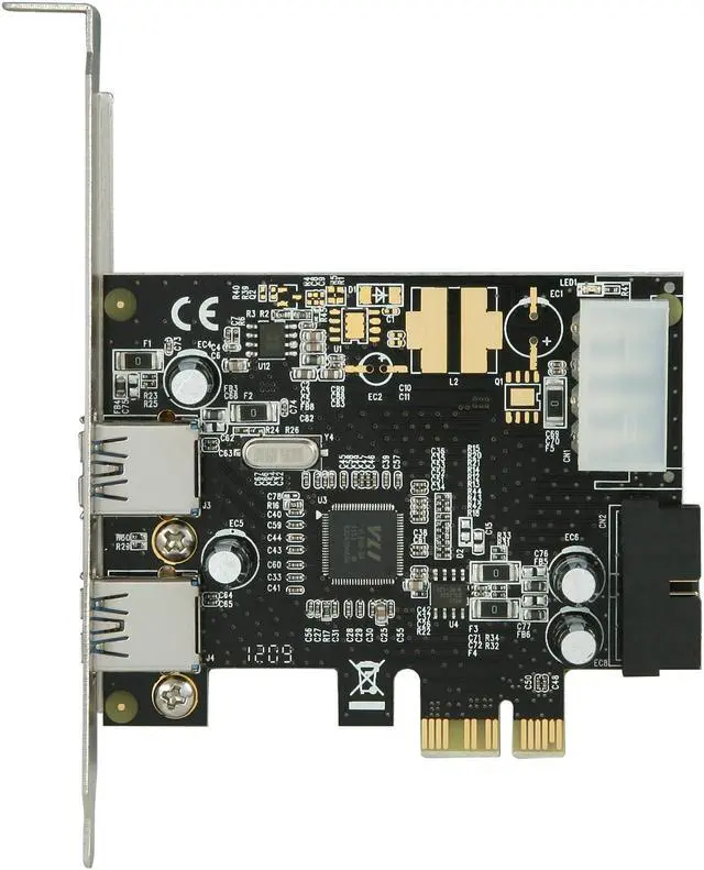 Based on VLI VL80x USB 3.0 Host Controller ICCompliant with Intel's Extensible Host Controller Interface (xHCI) Specification Revision 0.96Compliant with PCI Express Base Specification 2.0PCI-Express 2.0 1-Lane (x1) Interface with Data Transfer Rate Up to 5GbpsBackwards Compatible to PCI-Express 1.0a with Data Transfer Rate Up to 2.5GbpsInternal HDD Power Connector for Supplying Extra +5V Power to the USB PortsUSB Interface:Compliant with Universal Serial Bus 3.0 Specification Revision 1.0Provide USB 3.0 Super-speed (5Gbps) Host Port, Backward Compatible with USB 2.0 High-speed (480Mbps), Full-speed (12Mbps) and low-speed (1.5Mbps) InterfaceSupports All USB Compliant Data Transfer Types:ControlBulkInterruptIsochronousSupports All USB Compliant PeripheralsFull Support of Real Time Dynamic Insertion and Removal of USB Devices