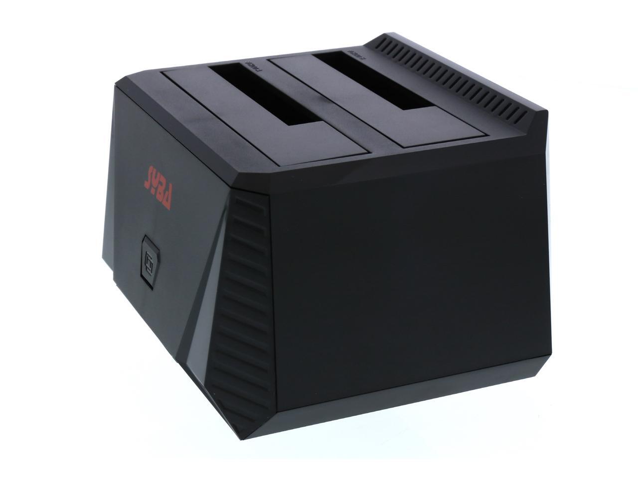 The SYBA USB 3.0 UASP Dual Bay Hard Drive Docking Station lets you duplicate an existing hard drive without a host computer connection – or access a bare HDD/SSD using a single USB connection. This dual bay docking station can support 2.5 and 3.5 SATAI/II/III HDDs or SSDs – up to 4TB per drive.