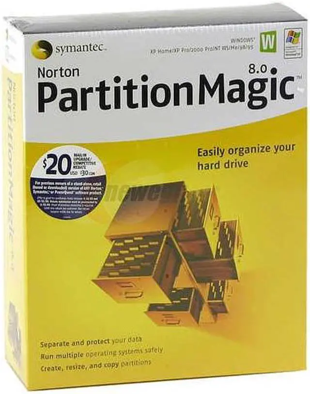 The Symantec Norton Partition Magic 8.0 software helps you organize your hard drive for maximum efficiency. Partition Magic lets you divide your hard drive into two or more partitions. Partitioning protects your computer and reduces data-loss in case of system crashes. This software enables you to copy, move, resize, split, and merge partitions as you want, without any loss of data. Partition Magic lets you run multiple operating systems on the same computer without any problems. The BootMagic technology makes it convenient to switch between different operating systems.
