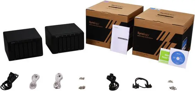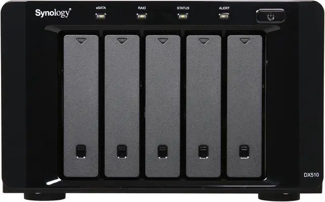 | Package Contents | Synology DS1010+ Main Unit Synology DX510 Main Unit User's Guide Installation CD Assembling Kit AC Power Adapter 2M RJ-45 LAN Cable x 2 eSATA cable |