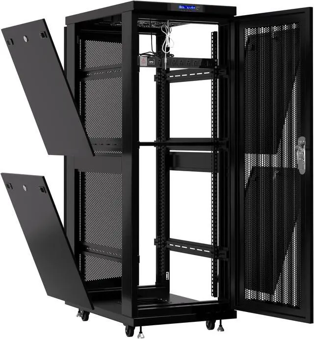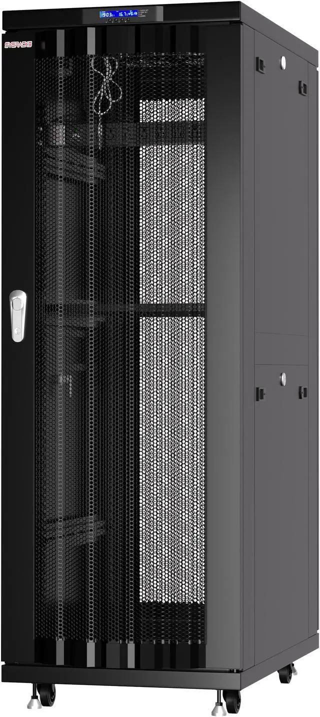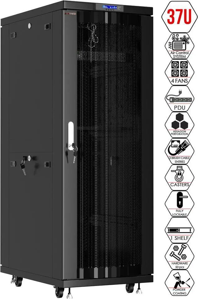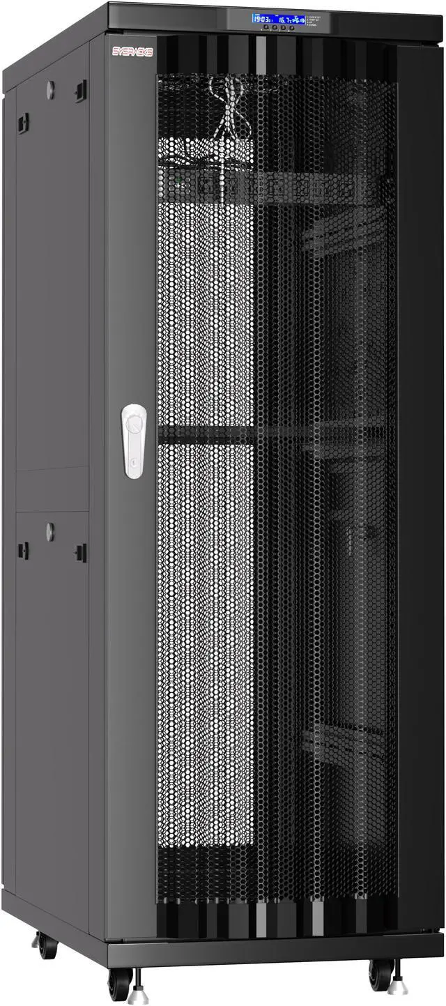 37U 24" Depth Server Rack Cabinet Sysracks SRF 37.6. 6 M – Vented Mesh Hexagonal Perforation Front/Rear Doors. 37U 24" Depth Server Rack Cabinet Sysracks SRF 37.6. 6 M - Black 37U 24" Deep Server Rack Cabinet SRF-Series is latest edition in the Sysracks product line. Fully lockable, on casters and leveling feet, LCD Screen reporting working parameters, 8-socket Power Distribution Unit, improved ventilation system and other features will be a great asset in your next IT project. Improved Assembly Process (Supplied in 5 boxes), renewed design and HQ parts/hardware will absolutely surprise any user, no need special abilities or tools.