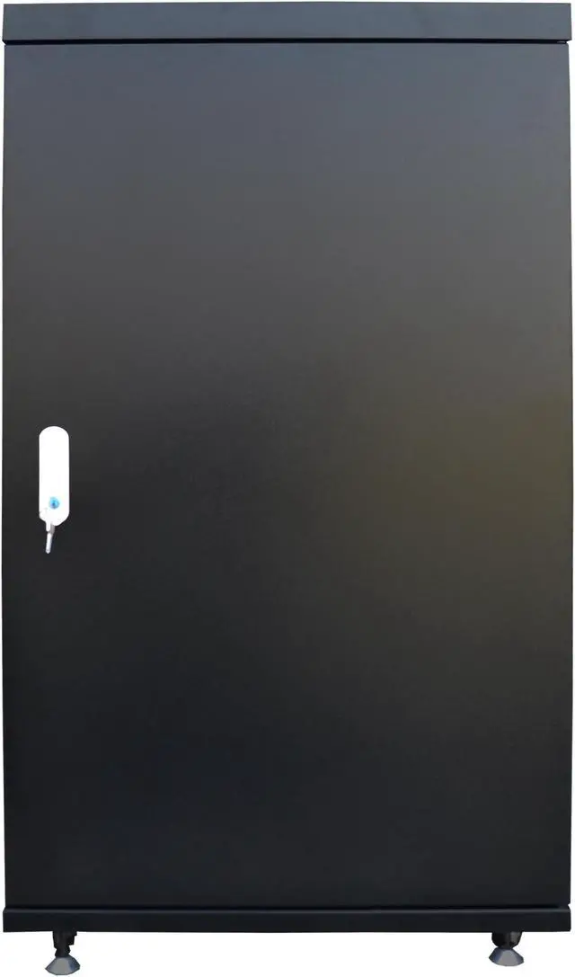 Features: 4 fan cooling panel, capacity 440m3/h Air Temperature Control System (THERMOSTAT) 8-way PDU Fixed vented shelf Heavy duty feet and casters with "brake" option Lockable latch handles Mounting hardware (Set of bolts/nuts -50 pcs) Front door – glass with hexagon perforated metal frame (optionally, steel mesh front door) Lockable and removable doors, side and rear panels 3 dust-tight brush strip panels for cable entry U-marking mounting rails