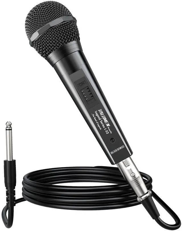 The talomen L52 Wired Dynamic Microphone is engineered to deliver professional sound quality with unmatched reliability. Built with a durable all-metal body and reinforced grille, it ensures long-lasting performance for singers, speakers, and entertainers. The precision dynamic capsule and internal pop filter reduce handling noise and plosives, giving you clear and consistent audio in every performance. Featuring a super cardioid pickup pattern, this cardioid microphone captures vocals with clarity while minimizing background noise, making it an excellent choice for live performances, karaoke, podcasts, speeches, church services, and studio recordings. With a frequency response of 50Hz-16KHz and sensitivity at -51.5 dBV/Pa, it reproduces natural vocals and instruments with precision, ensuring that every note and word is heard as intended. Unlike standard microphones, the L52 includes two premium XLR cables-a 20FT cable for stage freedom and a 6.5FT cable for smaller setups-providing flexibility for both live and studio use. The oxygen-free copper core and thick PVC jacket guarantee stable signal transmission, ensuring that your sound remains strong and uninterrupted during critical moments. Whether you are a beginner exploring karaoke nights or a professional needing a reliable vocal microphone, this versatile device adapts seamlessly to any scenario. It functions equally well as a singing mic for home parties, a recording microphone for singing in studios, or a wired microphone for karaoke in public events. Designed for heavy use, the L52 withstands the demands of frequent performances and travel. Its robust housing and reinforced connectors deliver long-term reliability, while the dynamic capsule ensures consistent sound reproduction. For singers, DJs, public speakers, and performers, the talomen L52 is not just a microphone-its a dependable partner for every stage, event, and recording session.