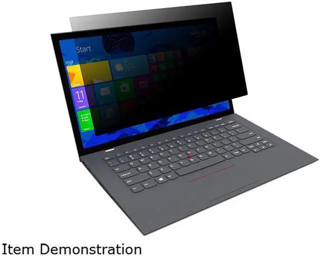 The 4Vu Privacy Screen is designed to fit 14.1 widescreen laptops. To protect your information, tiny vertical blinds on the surface of the privacy screen narrow the viewing angle so data is only visible directly in front of the monitor up to 30° away from the center of the screen. Onlookers will only see a dark unclear screen when attempting to view the information from a side angle. In addition to providing security, the screen also blocks the glare to help reduce eye strain.