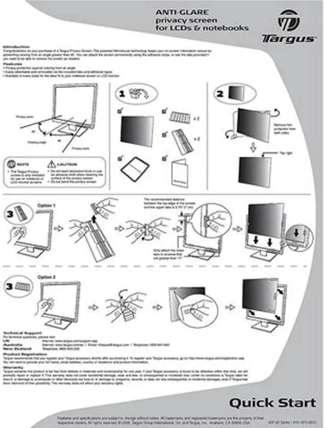 The 4Vu Privacy Screen can be easily attached by using clear double-sided adhesive strips designed for LCD filters or with the included tab guides that stick to the edge of the LCD bezel to hold the screen in place. Users can also position the tabs so the screen easily slides on and off. Highly portable and easy to use, the 4Vu Privacy Screen prevents onlookers from seeing valuable information often viewed on a display