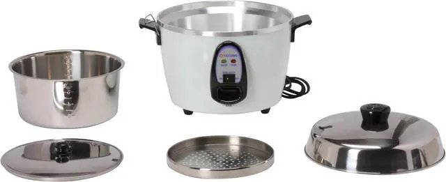| Features | Multi-functional rice cooker and steamer with warming option Cooks and steams: rice, stews, soups, seafood and others Stainless steel inner pot and accessories Double heating functions for better cooking Includes spatula, measuing cup and stainless steel steam traypot cover, lid holder clip, and cooking pot |