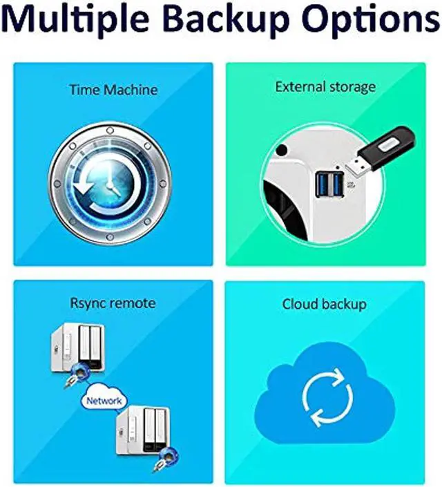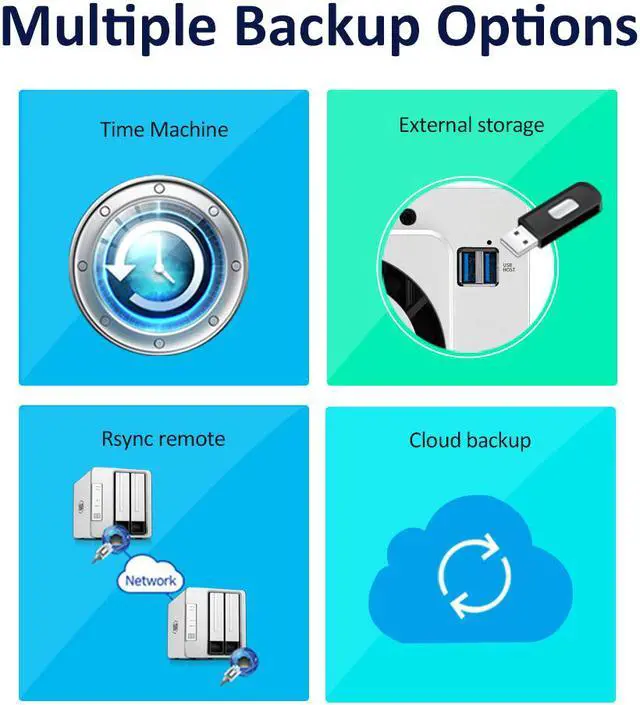 - Supports Apple Time Machine, Rsync, and Remote Backup support.