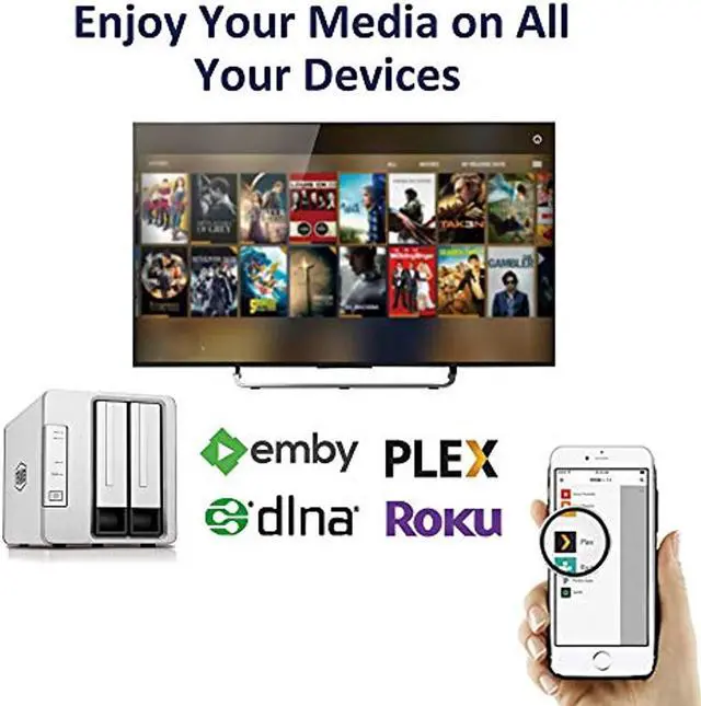 - Fully supports Emby and Plex, bringing your videos, music, and photos together into one place.