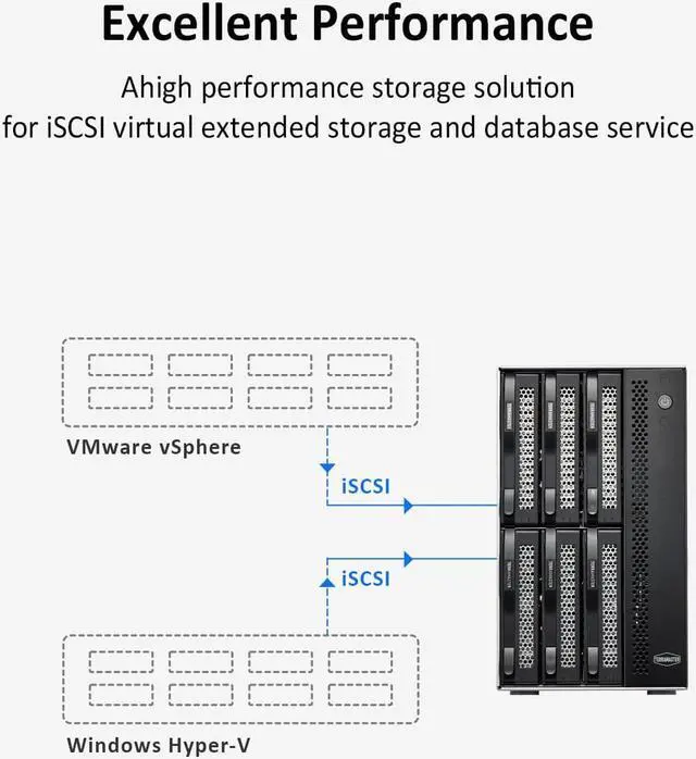 The T6-423 NAS storage is suitable for SMB users who need high-performance storage solutions. High performance means that users can easily handle high-load assignments, while multiple business-level backup solutions ensure data safety and prevent the potential risk of data loss.