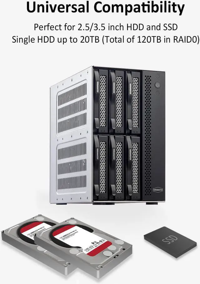 - Structural optimization has remarkably reduced the space occupied by the 6 bay NAS, thus realizing product miniaturization.