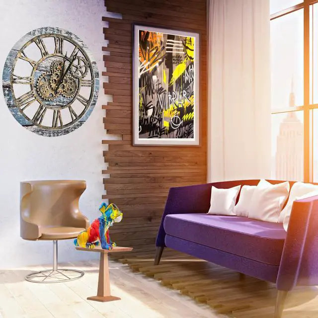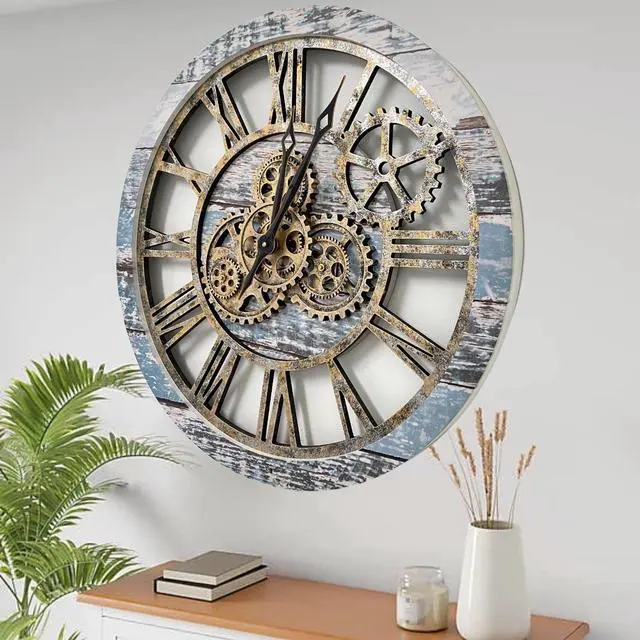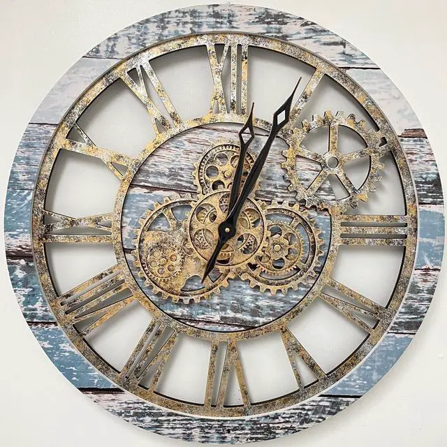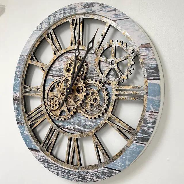 The Gears Clock 24'' Real Moving Gear Clock is a piece of art on your wall. MOVING GEAR | the Movement of the Gear makes the clock a living element in the environment in which it is placed. Great Decor in any room. QUALITY | Made using high-grade materials to ensure the clocks durability, the wood edge is left unmolded to leave a vintage aspect. PERFECT FOR ALL ROOMS | Improving life industrial vintage real gear clock is the perfect clock to dress up a wall in your kitchen, living room, bedroom, bathroom, family room, den, office.