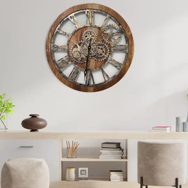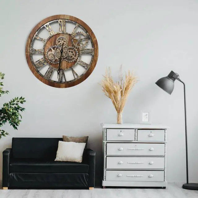 The Gears Clock 24'' Real Moving Gear Clock is a piece of art on your wall. MOVING GEAR | the Movement of the Gear makes the clock a living element in the environment in which it is placed. Great Decor in any room. QUALITY | Made using high-grade materials to ensure the clocks durability, the wood edge is left unmolded to leave a vintage aspect. PERFECT FOR ALL ROOMS | Improving life industrial vintage real gear clock is the perfect clock to dress up a wall in your kitchen, living room, bedroom, bathroom, family room, den, office.