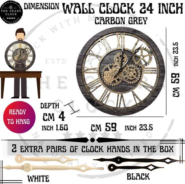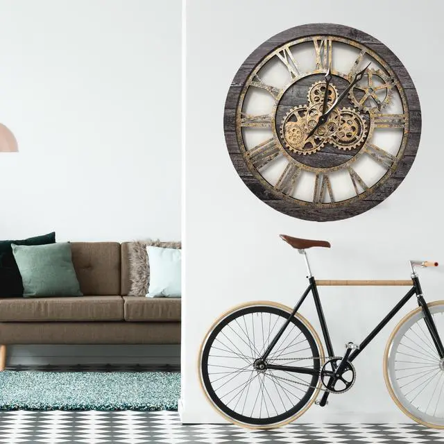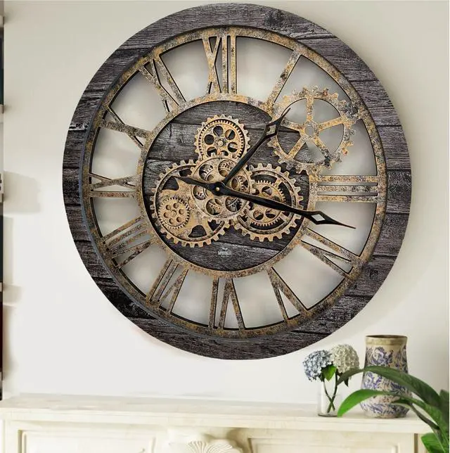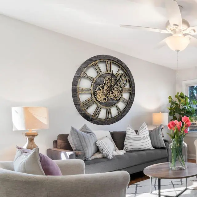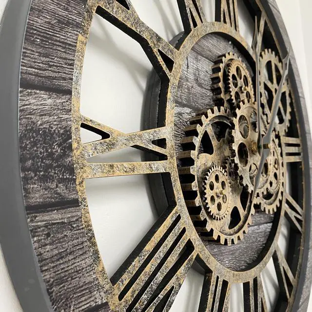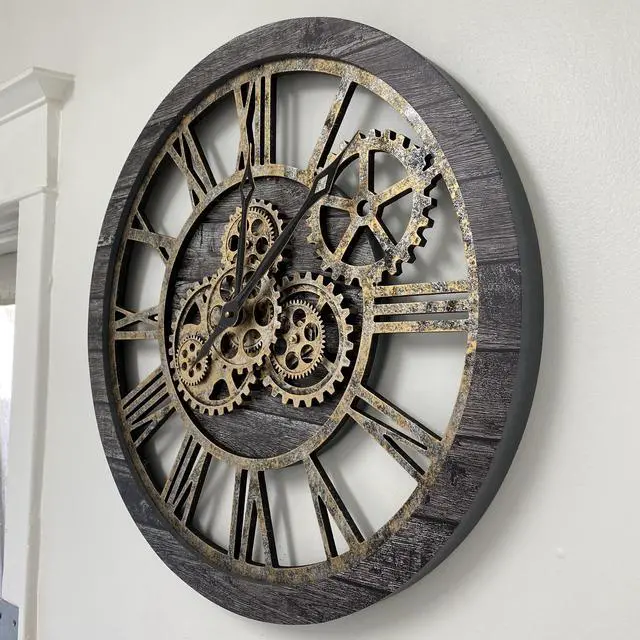 The Gears Clock 24'' Real Moving Gear Clock is a piece of art on your wall. MOVING GEAR | the Movement of the Gear makes the clock a living element in the environment in which it is placed. Great Decor in any room. QUALITY | Made using high-grade materials to ensure the clocks durability, the wood edge is left unmolded to leave a vintage aspect. PERFECT FOR ALL ROOMS | Improving life industrial vintage real gear clock is the perfect clock to dress up a wall in your kitchen, living room, bedroom, bathroom, family room, den, office.