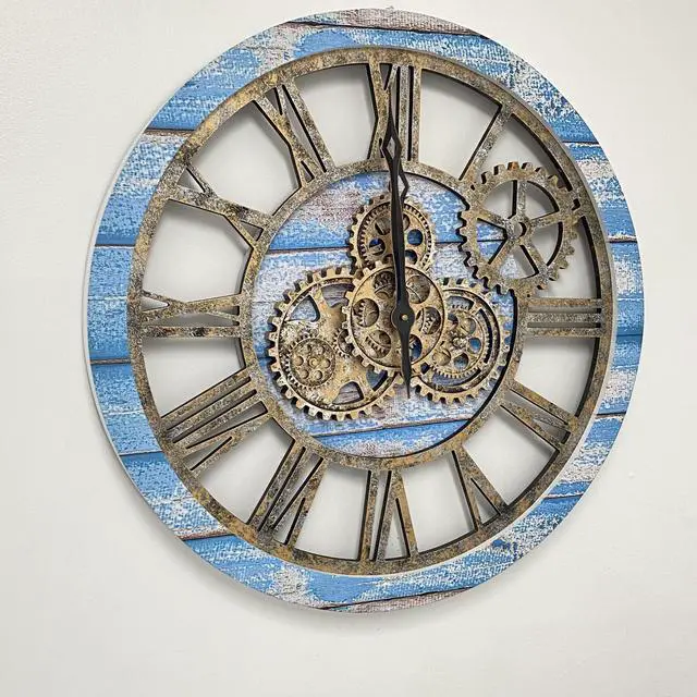 The Gears Clock 24'' Real Moving Gear Clock is a piece of art on your wall. MOVING GEAR | the Movement of the Gear makes the clock a living element in the environment in which it is placed. Great Decor in any room. QUALITY | Made using high-grade materials to ensure the clocks durability, the wood edge is left unmolded to leave a vintage aspect. PERFECT FOR ALL ROOMS | Improving life industrial vintage real gear clock is the perfect clock to dress up a wall in your kitchen, living room, bedroom, bathroom, family room, den, office.