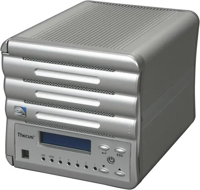 Fast Data TransferThe Thecus N0503 ComboNAS features a speedy Intel Atom processor with 1GB DDR2 SODIMM RAM for powerful data-processing capabilities and supports three 3.5" or five 2.5" hot-swappable SATA hard drives for up to 6TB of storage at ultra-fast transfer rates.