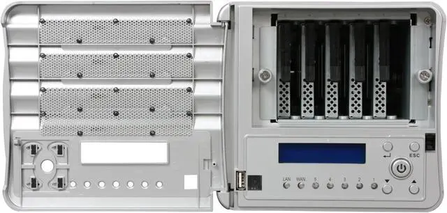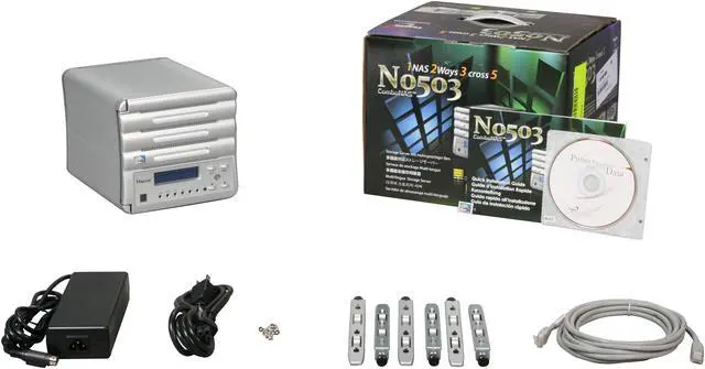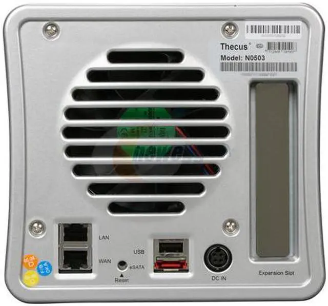 Superior ConnectivityThe Thecus N0503 ComboNAS features dual Gigabit Ethernet ports for lightning-fast file transfer so you can access your digital media throughout your home or office network quickly and easily. Two high-speed USB 2.0 ports and one eSATA port are featured to connect your external storage devices for network storage expansion or data backup.