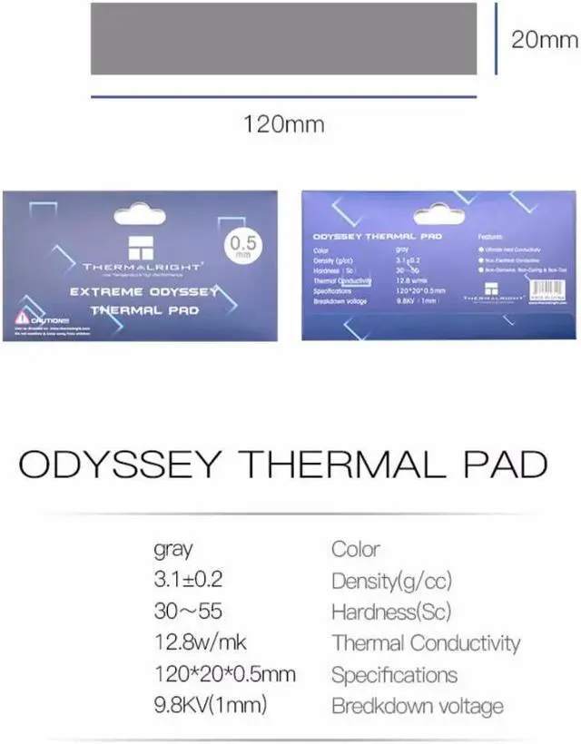 Thermalright Extreme Odyssey Thermal Pad 12.8 W/mK Non Conductive Heat Resistance High Temperature Resistance Silicone Thermal Pads Suitable for Laptop Heatsink/GPU/CPU/LED Cooler 120x20x2.5mm