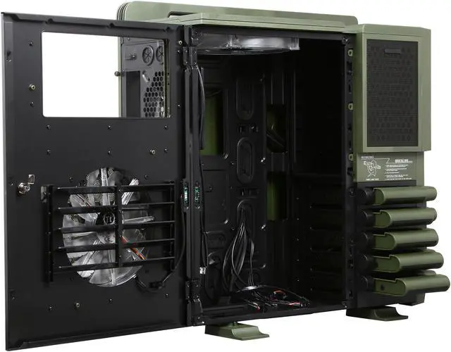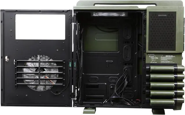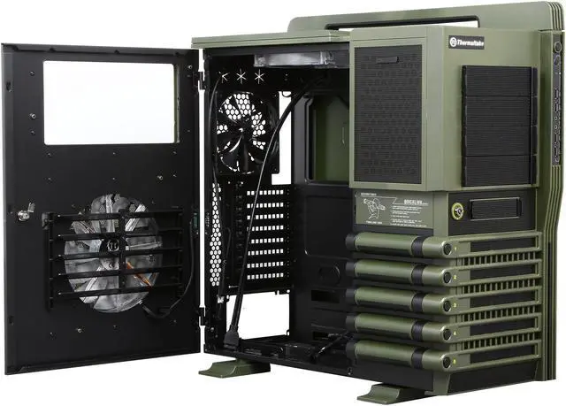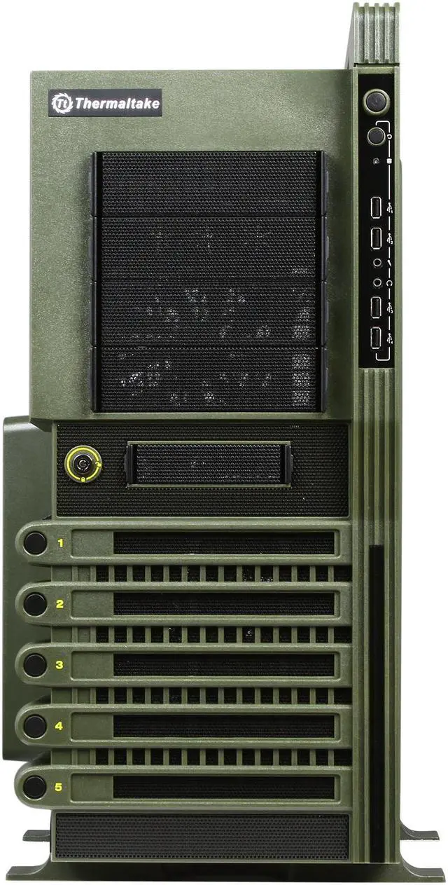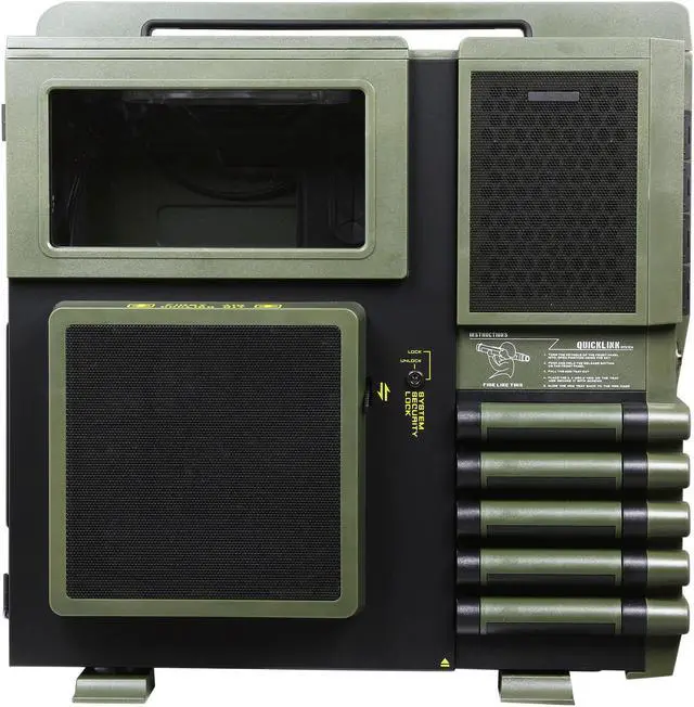 Level 10 GT battle edition also comes standard with every premium features a PC enthusiast or hardcore gamer would want. Connectivity array includes four USB 2.0 ports and a pair of audio ports located on the front bezel, plus two USB 3.0 ports and one eSATA port located on the top for high-speed data transfer. Each intake fans comes with dedicated filter system and can be easily removed for cleaning. Locking systems for both hinged side-panel door and hot-swappable hard drive caddies are embedded to prevent theft when the system is brought to LAN events or public areas. 120mm or 240mm radiators can be easily attached to the top side of the chassis when enthusiasm pushes you to the ultimate limits. Fully black-powdered interior is perfect for anyone wishing to showcase the impressive components.