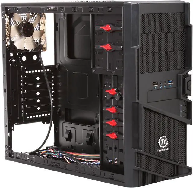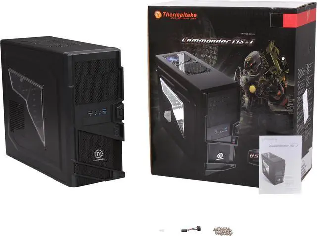 Stylish, affordable and feature rich, the Thermaltake Commander Mid Tower is a great value to build your dream house. All black coating from inside out combined with meshed front panel adds overall quality and emits a high-end look. A rear outtake fan and support for optional 3 fans help dissipate heat generated by internal components quickly and efficiently. A good list of features, such as front USB 3.0 access, up to 12.5" long graphic card support, cut-outs for cable management, tool-less mount for 5.25", 3.5" and floppy drives, 2.5" HDD & SSD compatibility, and bottom placed PSU with filter, make this chassis an excellent choice for your power house, whether you build it from ground up or relocate your existing system.