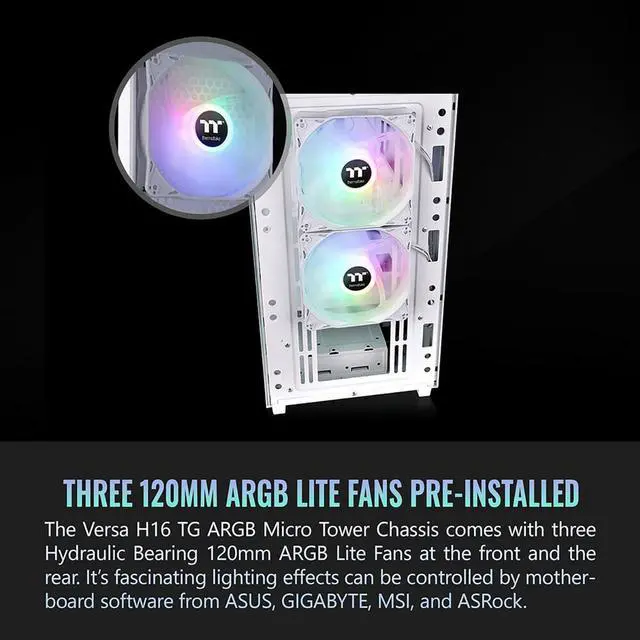 Tempered Glass Side Panel with ARGB Fans: Show off your build through a 3mm tempered glass side panel and enjoy vibrant lighting from the three pre-installed 120mm ARGB fans.