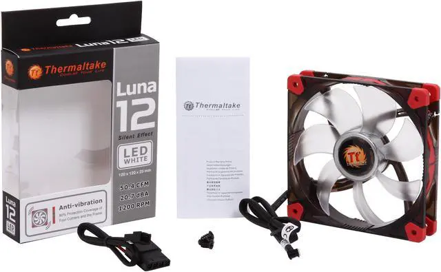 The Thermaltake Luna 12 LED fan provides efficient and quiet cooling whether used to pull cool air into the PC system or push hot air out. With precisely balanced fan blades and long-life bearings, it guarantees ultra low noise. You'll find them in a total of three colors (Red, White and Blue) to suit your preferences.
