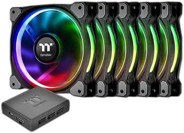 Riing Plus 14 LED RGB Radiator Fan TT Premium Edition (5 Fan Pack) Thermaltake combines the patented gorgeous LED light with cutting-edge technology to deliver a brand new experience of using PC cooling, Thermaltake Riing Plus 14 LED RGB Radiator Fan TT Premium Edition. A 140mm high-static pressure fan with a patented 16.8 million colors LED ring and 12 controllable single LEDs, the Riing Plus 14 RGB features compression blades, hydraulic bearing and a digital fan controller, and can be controlled by the patented Riing Plus RGB Software. Cool your system with high performance Thermaltake Riing Plus 14 RGB! Patented LED Design Featuring 12 controllable single LEDs, great light coverage, and uniform color and brightness, the built-in LED ring can paint your build with 16.8 million colors.