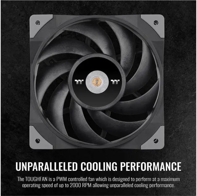 The TOUGHFAN is a PWM controlled fan which is designed to perform at a maximum operating speed of up to 2000 RPM allowing unparalleled cooling performance.