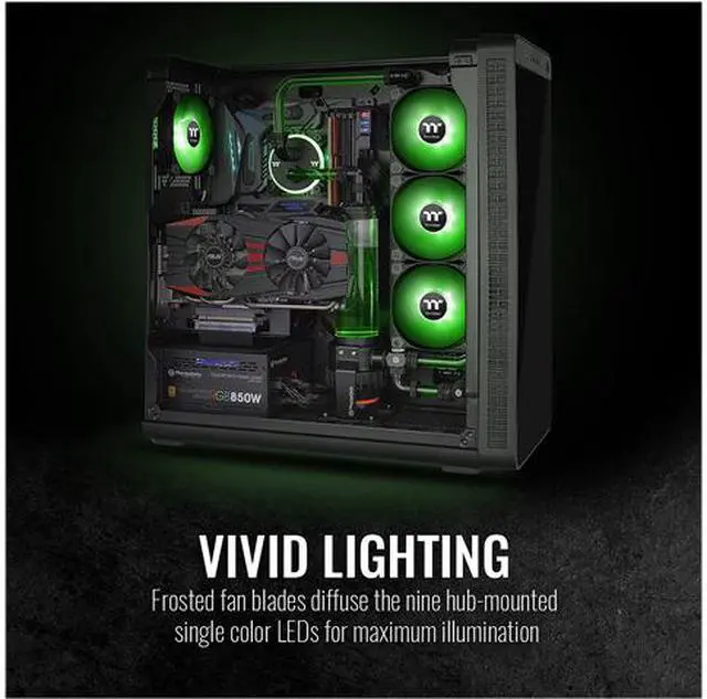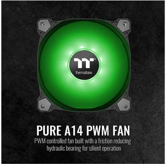 Pure A14 PWM controlled fan comes with 4 color options including red, blue, green and white. Designed for radiator cooling, the Pure A14 LED fan incorporates 9 LEDs, long-life hydraulic bearings for silent operation, and anti-vibration dampening foam which minimizes vibration and sound.