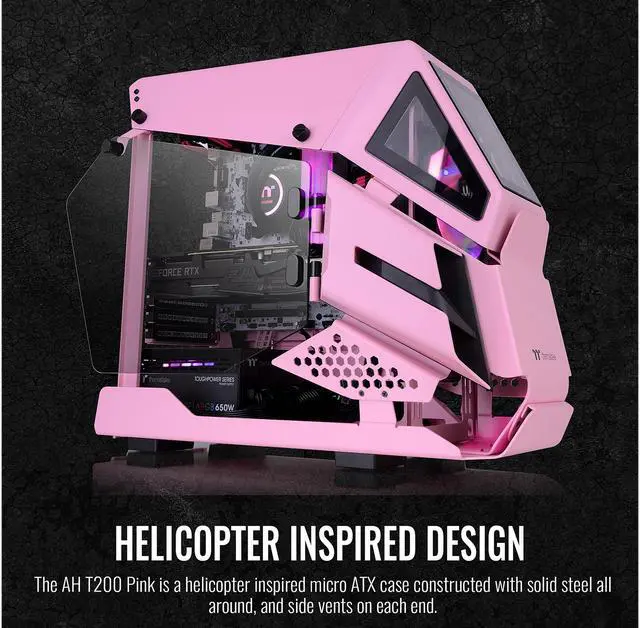 The AH T200 Racing Green is a helicopter inspired micro ATX case constructed with solid steel all around, and side vents on each end. It comes with two beautifully designed 4mm tempered glass panels on each side and three 3mm small tempered glass windows at the front not only helps you showcase interior components but also highlights the helicopter design concept.