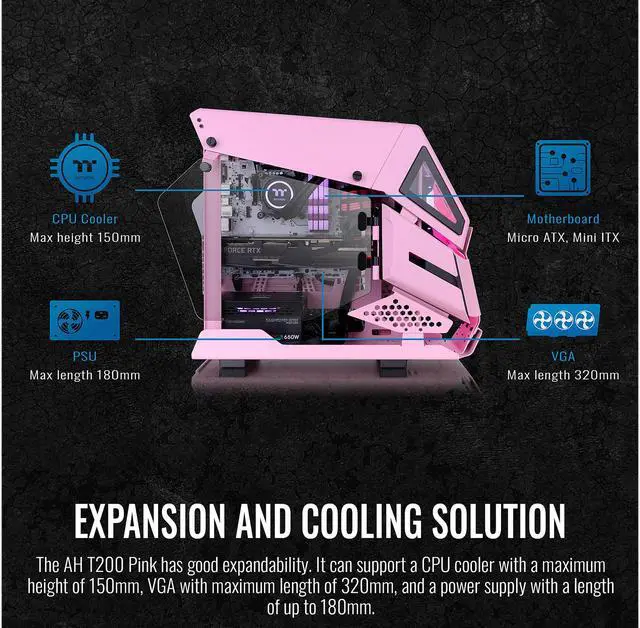 Sophisticated and special interior space design of the AH T200 Racing Green provides enough capacity for PC componets placement and cable management. An extra L-shape GPU support bracket comes in the accessary box for further support for high-end GPU.