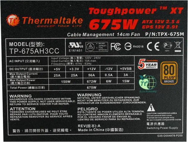 ATX12V and EPS12V CompatibleCompatible with the ATX12V v2.3 and EPS12V v2.91 standards, the Thermaltake Toughpower XT TPX-675M provides maximum power stability to drive the processors as well as other components for desktop and server computer systems.